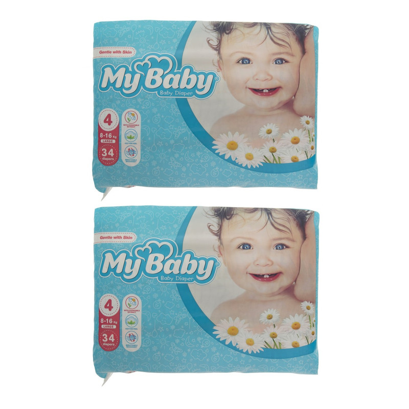 پوشک چسبی بچه مای بیبی مدل کانال دار شماره 4 سایز L دو بسته 34 عددی
