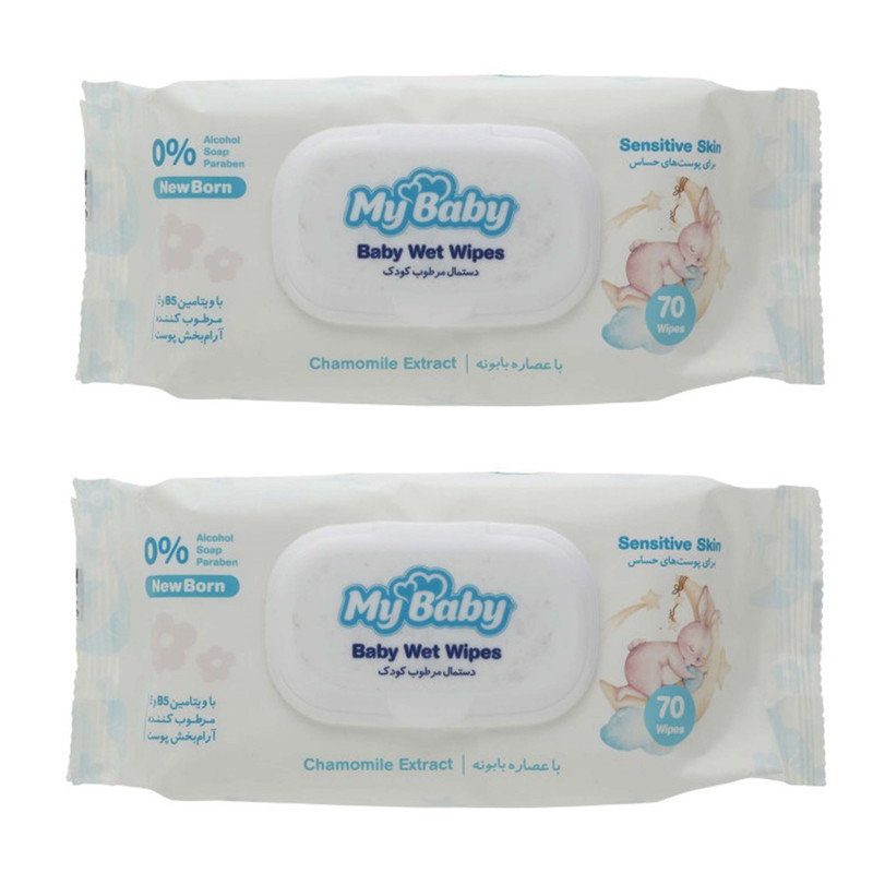 دستمال مرطوب کودک مای بیبی مدل sensitive دو بسته 70 عددی