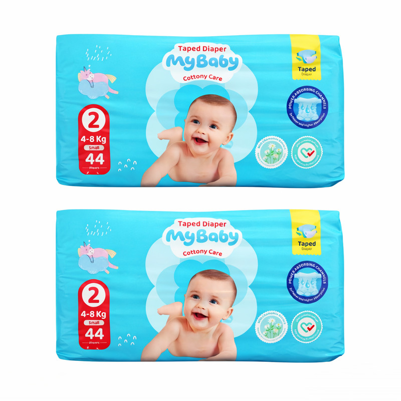 پوشک چسبی بچه مای بیبی مدل کانال دار شماره 2 سایز S دو بسته 44 عددی