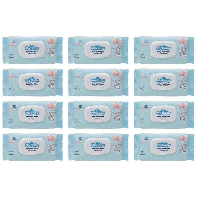 دستمال مرطوب کودک مای بیبی مدل normal دوازده بسته 70 عددی