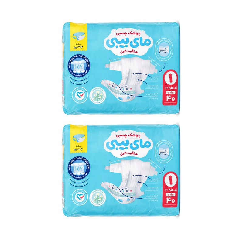 پوشک چسبی بچه مای بیبی مدل کانال دار شماره 1 سایز Newborn دو بسته 40 عددی