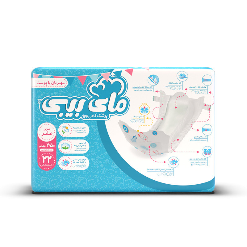 پوشک بچه مای بیبی مدل چسبی سری مهربان سایز ۰ ۳ بسته 22 عددی
