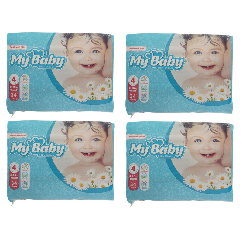 پوشک کودک مای بیبی مدل Max Care سایز 4 چهار بسته 34 عددی