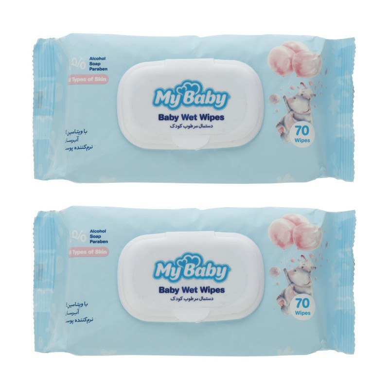 دستمال مرطوب کودک مای بیبی مدل normal دو بسته 70 عددی