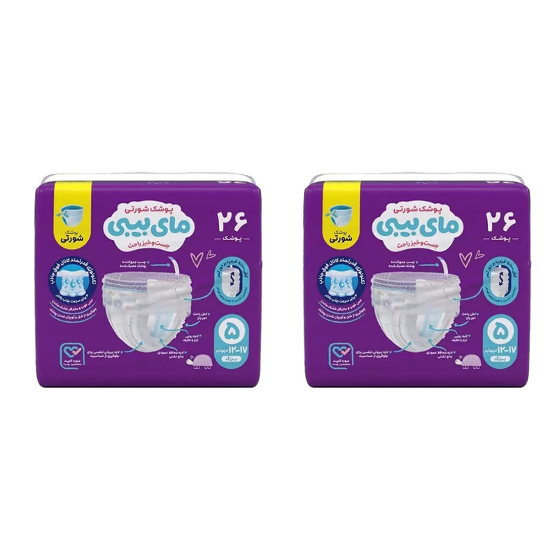 پوشک شورتی مای بیبی مدل کانال دار سایز 5 دو بسته 26 عددی