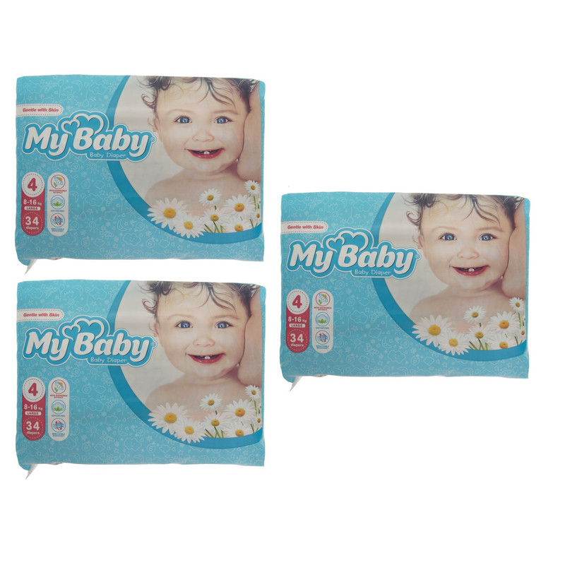 پوشک کودک مای بیبی مدل Max Care سایز 4 سه بسته 34 عددی