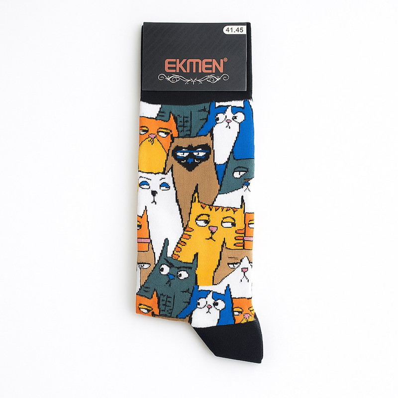 جوراب ساق بلند زنانه جوراب اکمن ترک مدل گربه های خشمگین