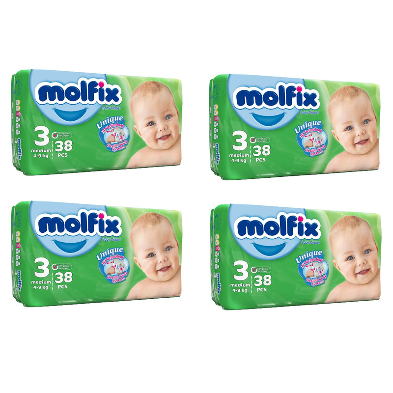 پوشک کودک مولفیکس کد 012 بسته 38 عددی مجموعه 4 عددی