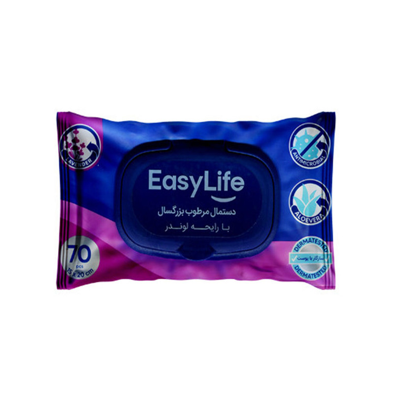 دستمال مرطوب ایزی لایف مدل لوندر بسته 70 عددی