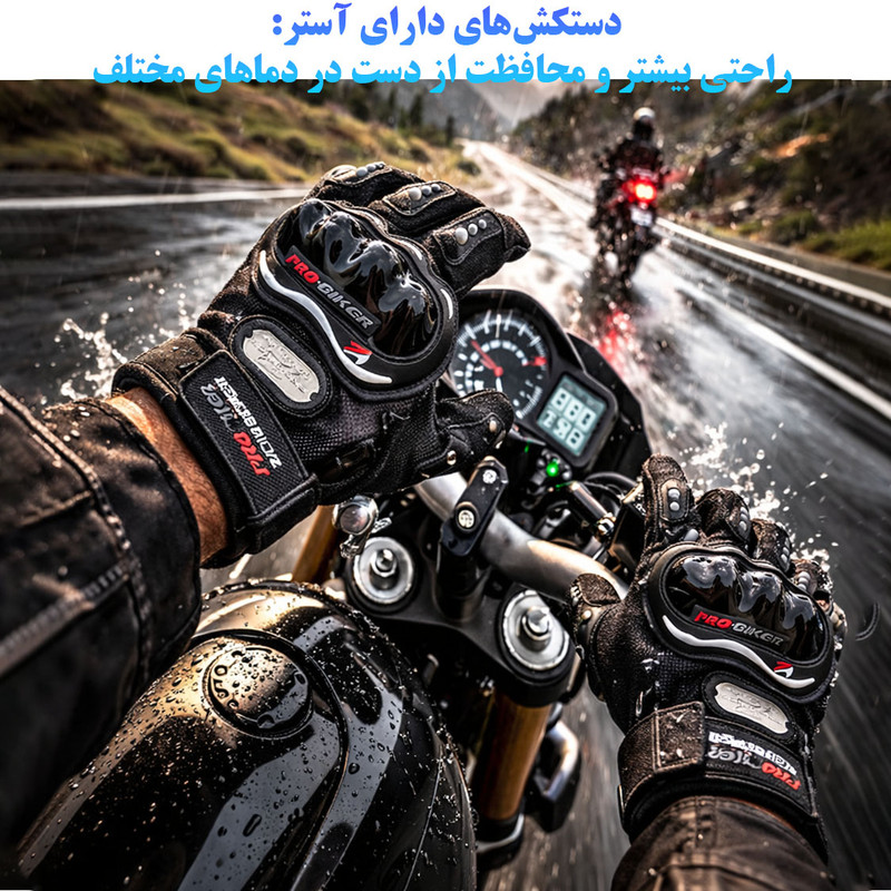 نوع دستکش موتورسیکلت: بدون قابلیت اتصال به دستهی موتور