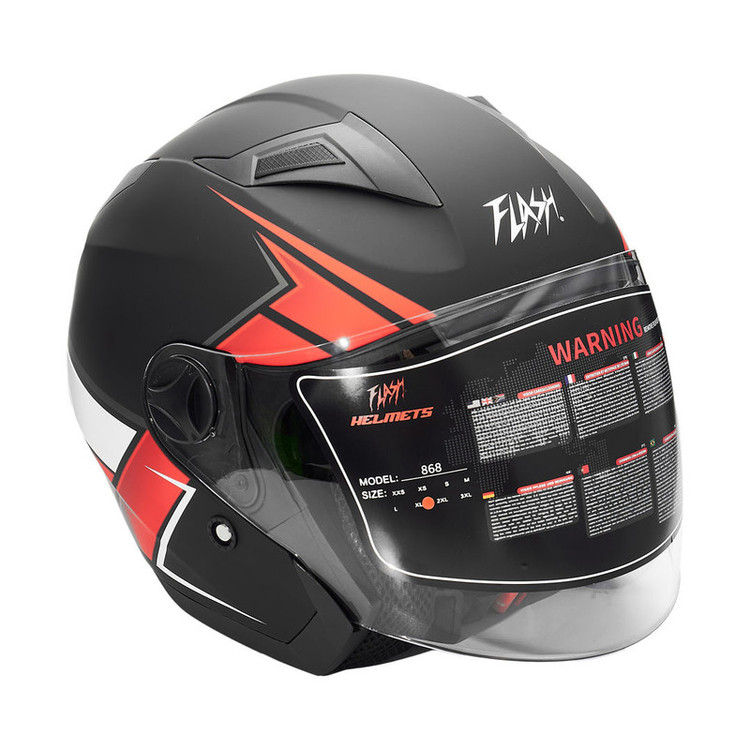 کلاه کاسکت بدون فک فلش مدل 868 matt black-red-white
