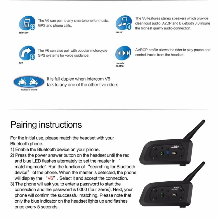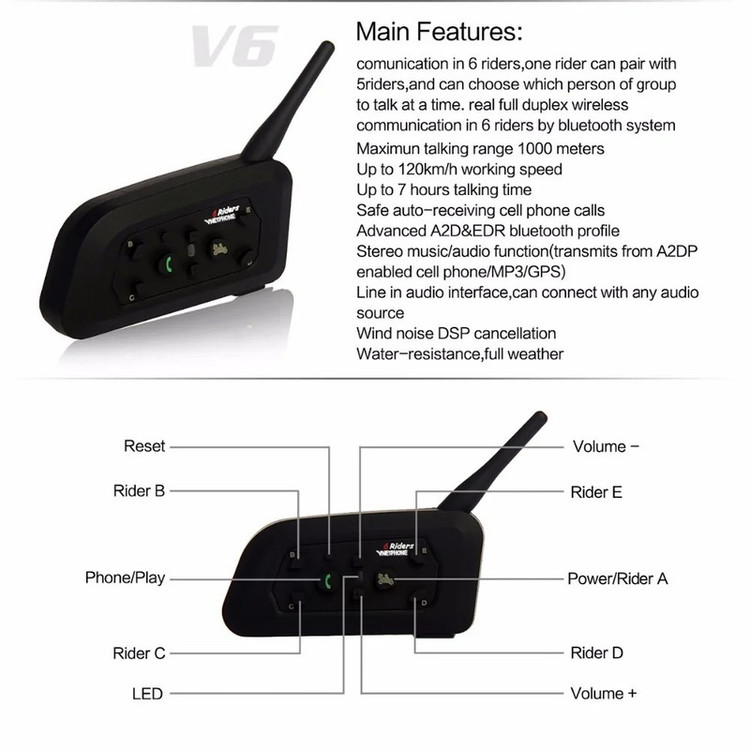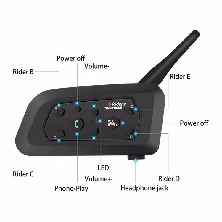 VNETPHONE V6 Riders چند منظوره برای موتورسیکلت، بلوتوث 5.1، 2 تکه مکالمه دو طرفه، 1 دستگاه اصلی میتواند 5 دستگاه فرعی را تغییر دهد فاصله مکالمه 800 متر (تقریباً 2600 فوت) اتصال خودکار به تماس زمان مکالمه 18 ساعت زمان آماده به کار 260 ساعت سطح ضد آب ip65