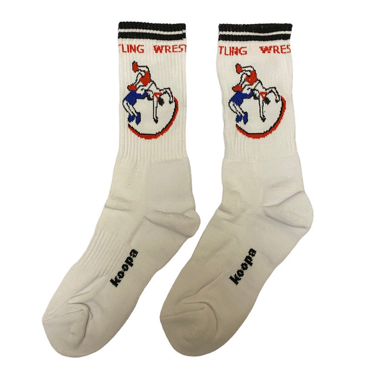 جوراب ساق بلند ورزشی تشکیل شده از 70 درصد نخ مناسب برای سایز پا 40 تا 44 کف حوله ای مناسب برای کشتی