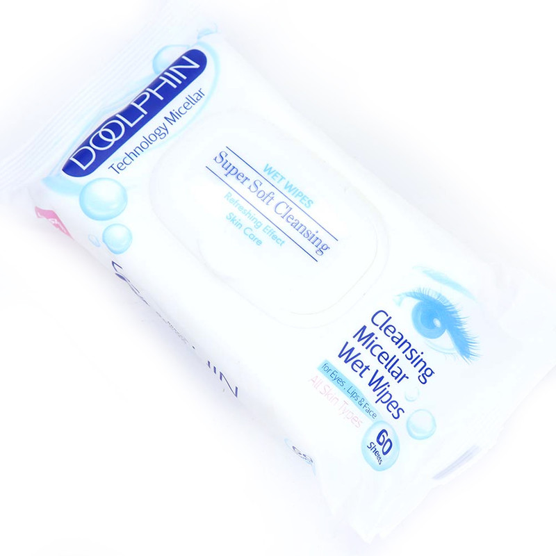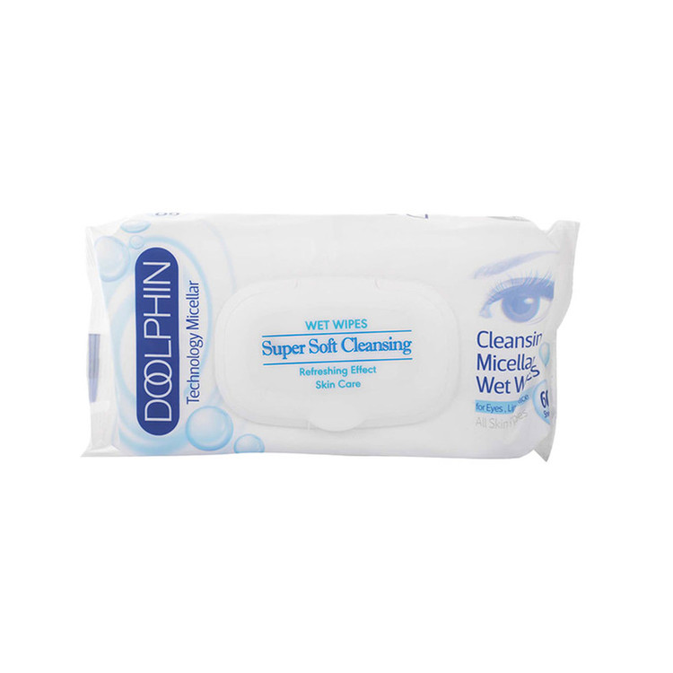 دستمال مرطوب پاک کننده آرایش دلفین مدل 001 بسته 60 عددی