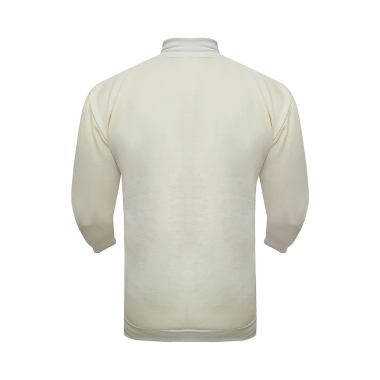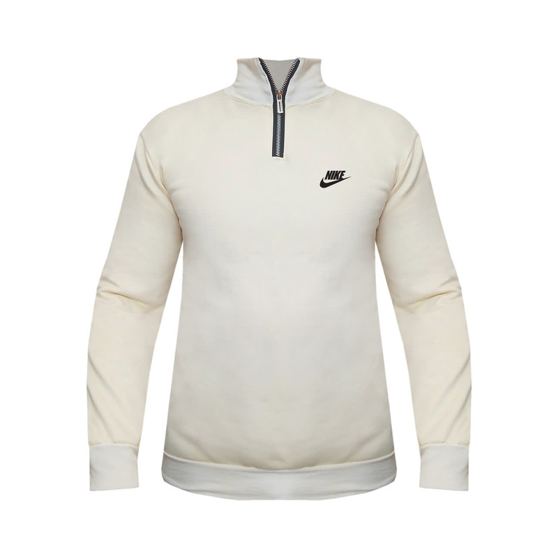 نیم زیپ رنگ کرم جنس دورس اسپان دو نخ داخل کرکی جنس ضخیم دم آستین و پایین لباس کش بافت جنس لطیف تن خور شیک واندامی مناسب پاییز و زمستان دارای سایزبندی جنس لوگوها از نوع پرس حراراتی کره ای