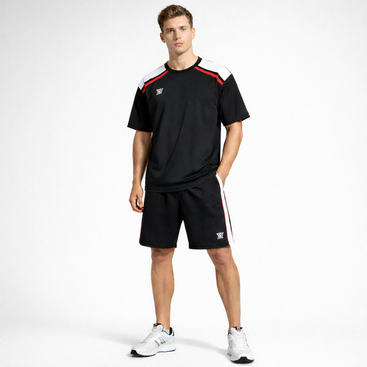 ست تی‌شرت آستین کوتاه و شلوارک ورزشی مردانه نوزده نودیک مدل ST1918 BW