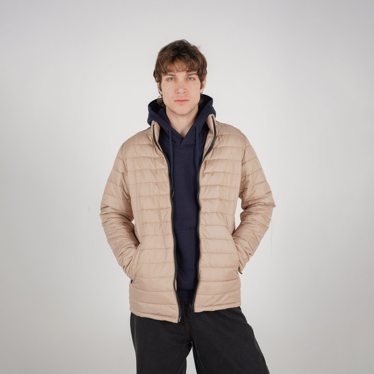 کاپشن مردانه / دو جیب داخلی / دو جیب جانبی / بادگی و ضد آب / قد تا روی باسن / رنگ بژ .