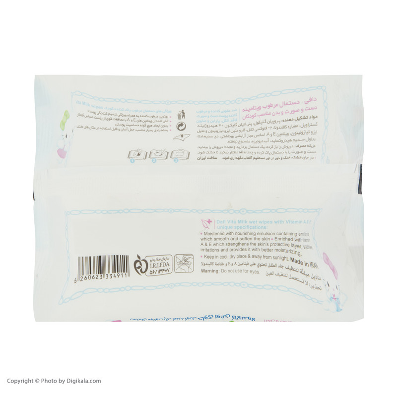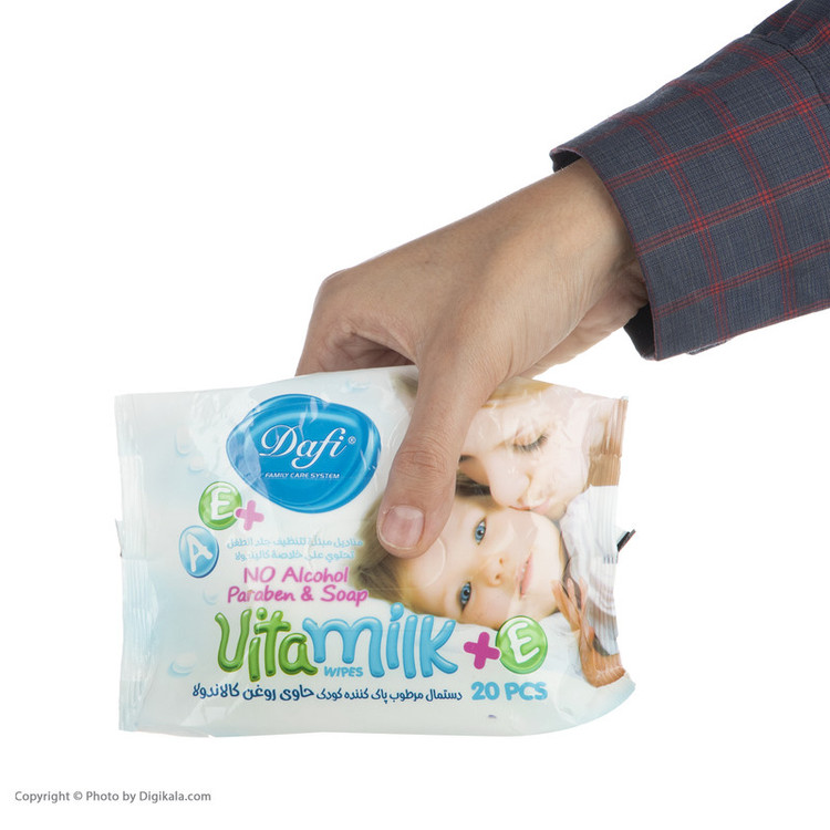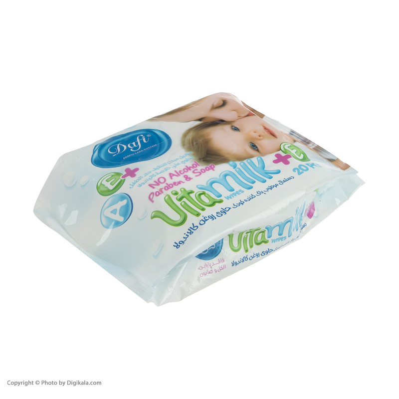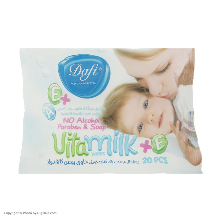 دستمال مرطوب کودک دافی مدل Vita Milk بسته 20 عددی