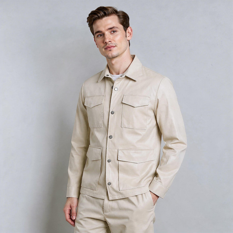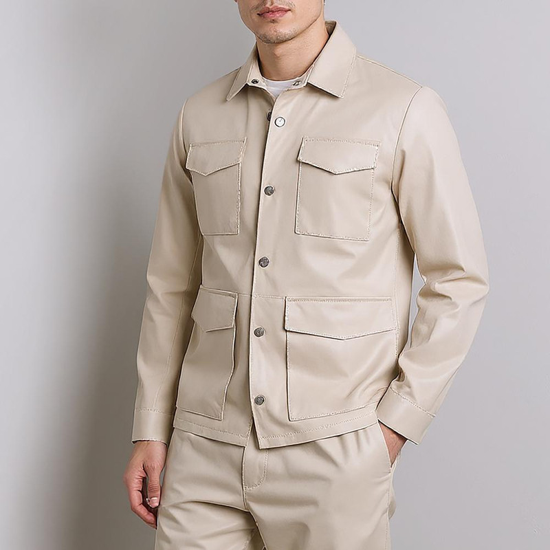 کاپشن مردانه چرم /تهیه شده از 100% چرم طبیعی/استایل Comfort-Fit/بدون آستر/دارای دو جیب/آستین تک دکمه