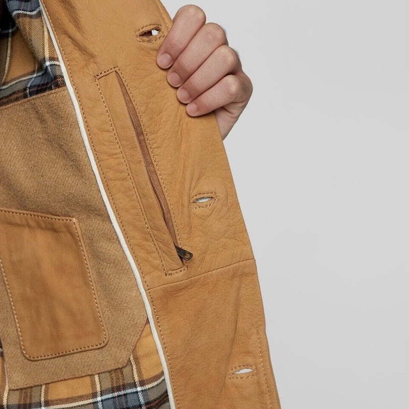 100% چرم نوبوک ضد آب آستر فلانل 100٪ پنبه است. آسترهای آستین 100% پلی استر هستند سه جیب جلو