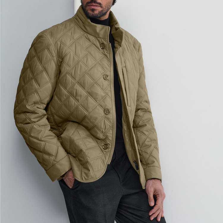 کاپشن مردانه، دارای 2 جیب دکمه ای بیرونی و یک جیب زیپی، دارای 3 جیب زیپدار داخلی، پارچه ضد نفوذ آب و باد