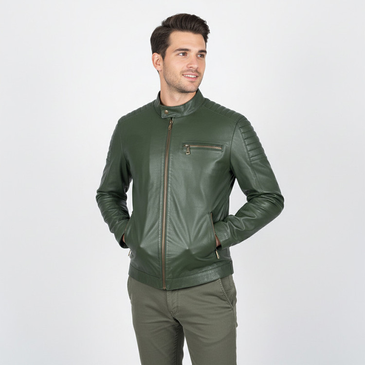 کت چرم ساده زیپ دار با یقه ایستاده