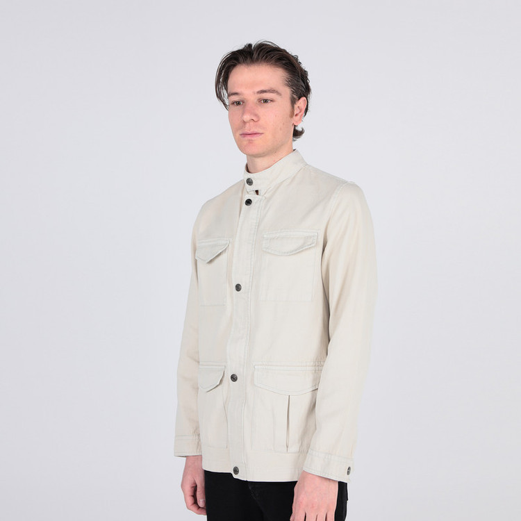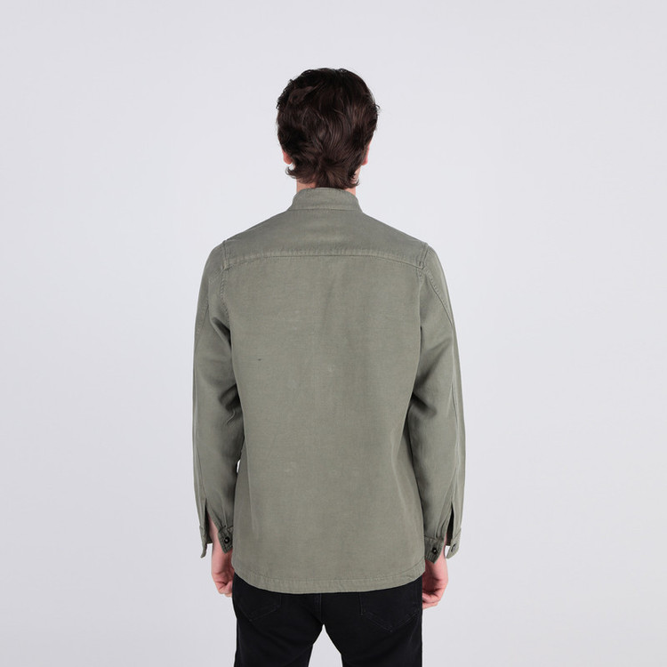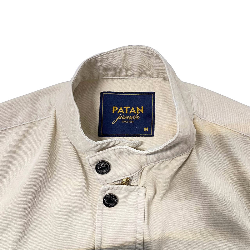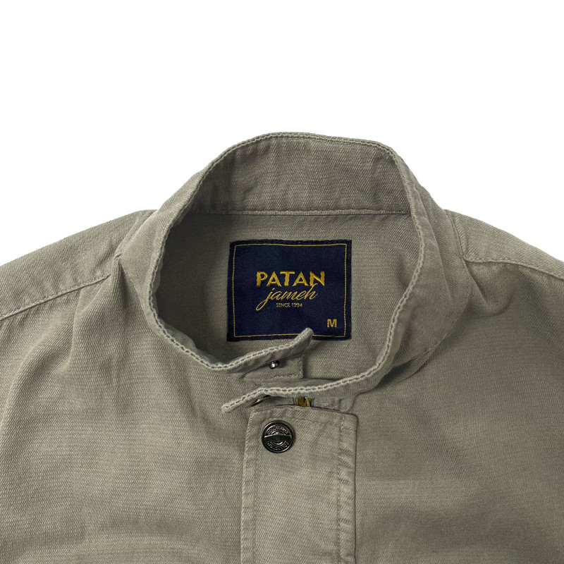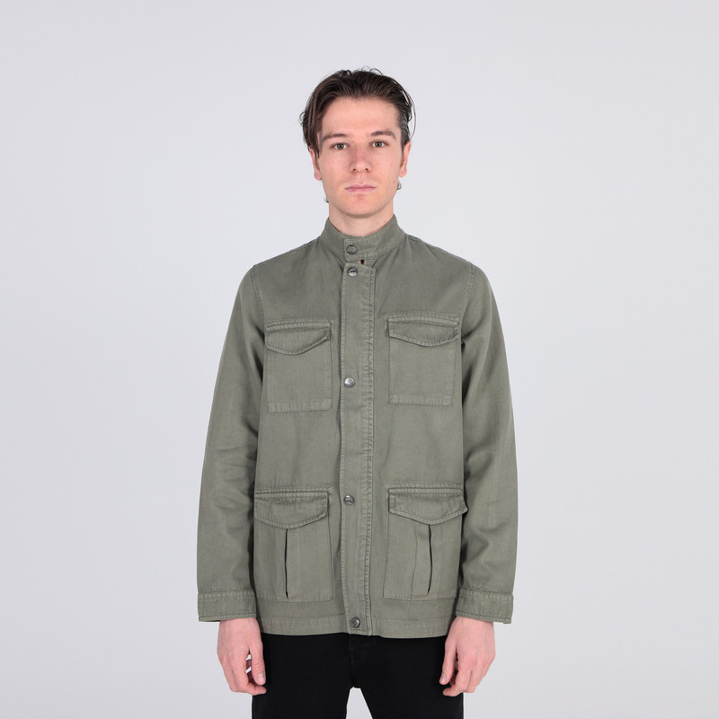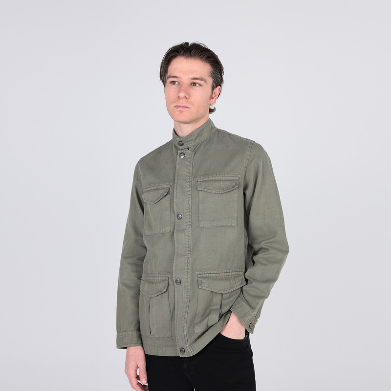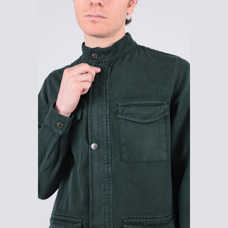 صد در صد کتان / یقه ایستاده / نسبتاً ضخیم / تمام دکمه فلزی / قد تا روی باسن / رنگ کرم . سبز . سبز تیره .