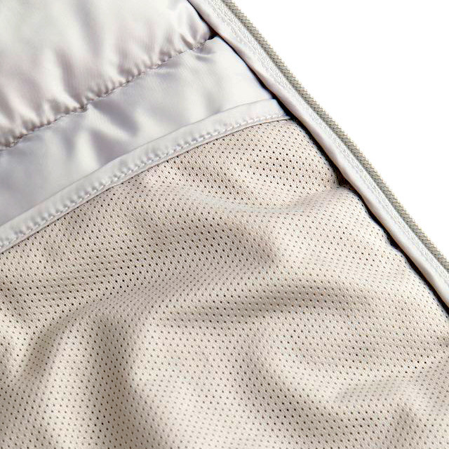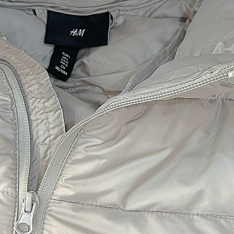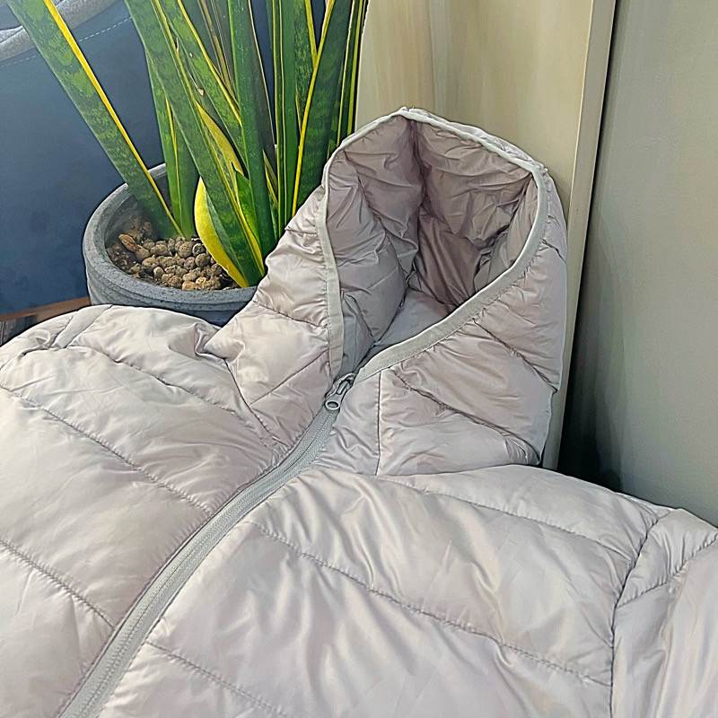کاپشن پف دار سبک از پارچه بافته شده با کلاه، محافظ که دارای جنس عدم جذب آب است . آستین های بلند، جیب های زیپ دار مخفی که سرآستین ها و لبه های آن را به صورت الاستیک تزئین می کند .