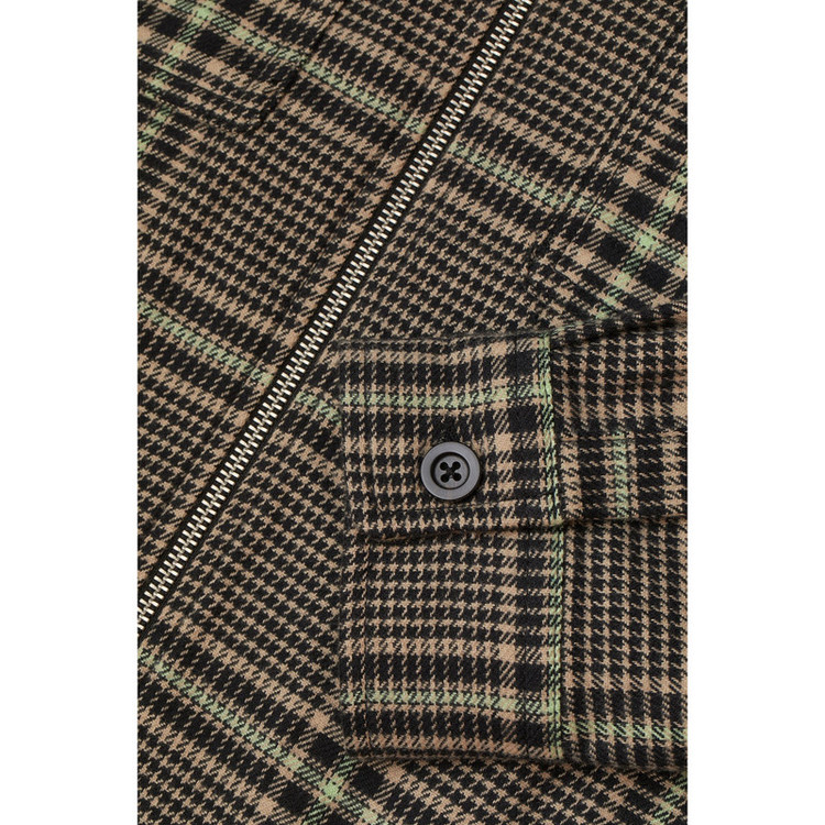 کت با پارچه جناغی نخی. مدل با یقه و زیپ جلو. جیب سینه با فلپ با دکمه پرسی مخفی. آستین ها با چاک و سرآستین های دکمه دار تکمیل شده اند. یوغ پشت و سجاف راست. بدون آستر