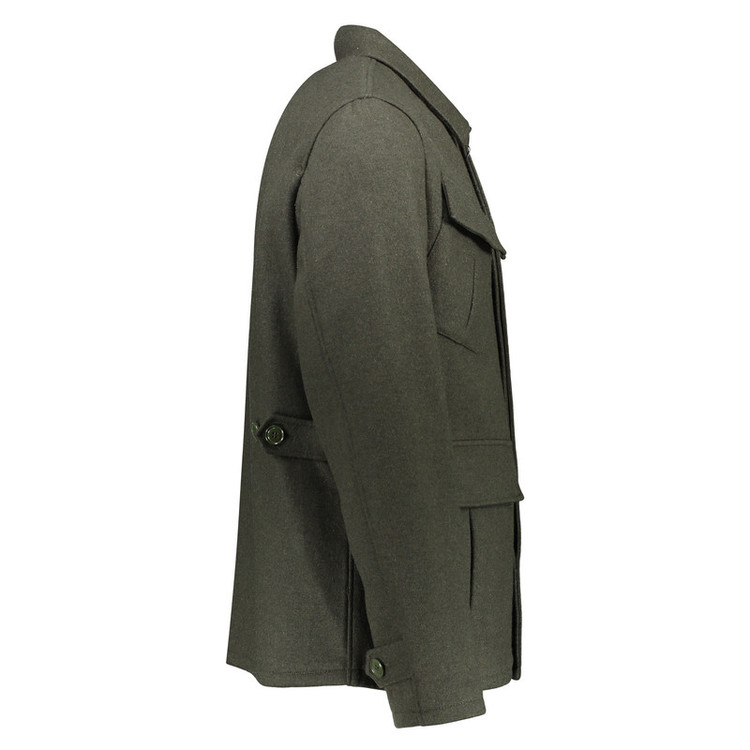 این کت مردانه آستین بلند و یقه برگردان است جلوی لباس به وسیله یک ردیف دکمه بسته می شود دارای چهار جیب در جلو روی کمر برای تنظیم سایز بند و دکمه دارد مناسب استایل روزمره قد پشت لباس معادل 72.5 سانتی متر است