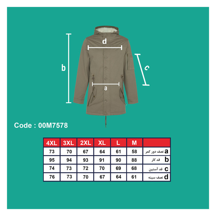کاپشن مردانه پاتن جامه مدل 111221000160539 کلاهدار