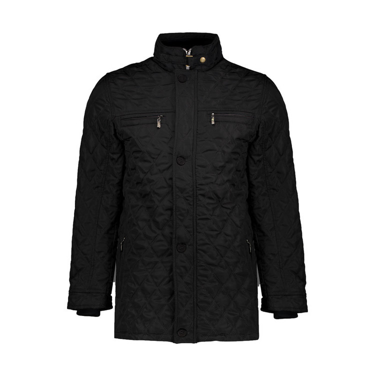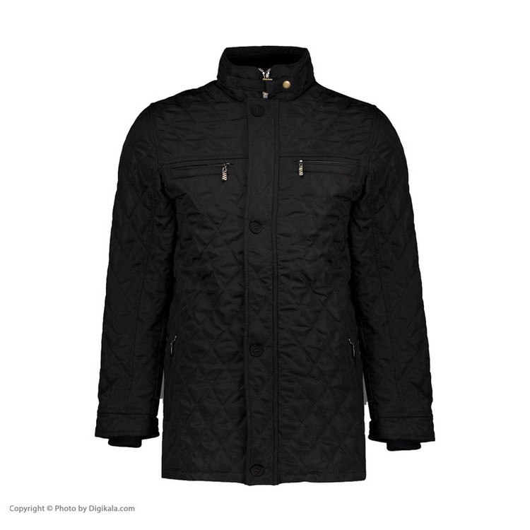 مشکی / دارای دو جیب روی سینه و دو جیب کناری زیپدار / بسته شدن بازیپ و کاور دکمه دار / بسته شدن یقه با دکمه