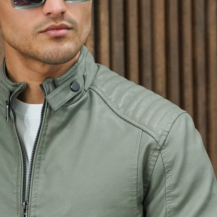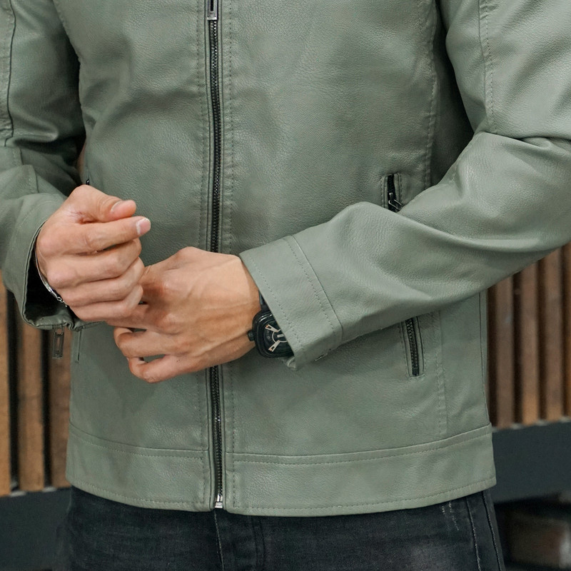 کت چرم مردانه/ دوخت عالی/ زیپ بسیار با کیفیت/ متریال وارداتی/ یقه ایستاده/ دو جیب زیپ دار در جلو/ آستین زیپ دار/کت اسلیم فیت/ لطفا تا دو سایز بالاتر از سایز خود سفارش دهید/ رنگ:سبز