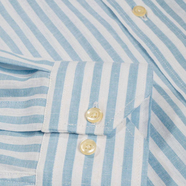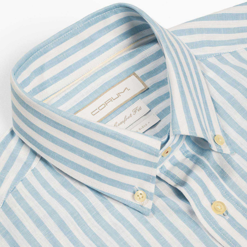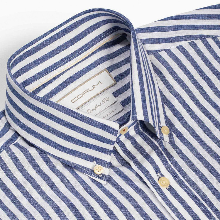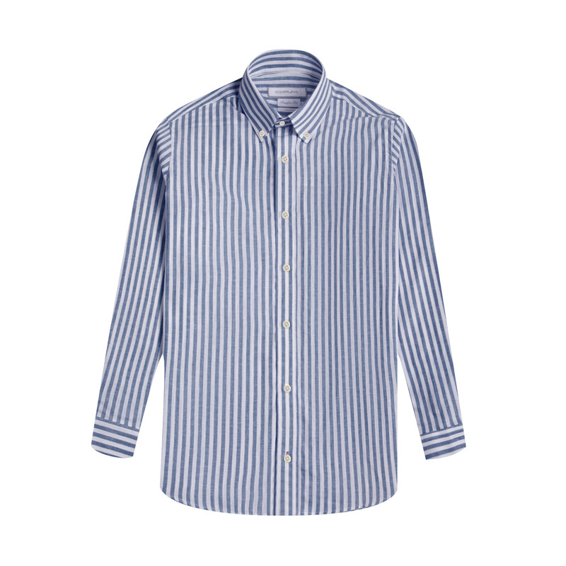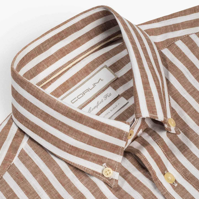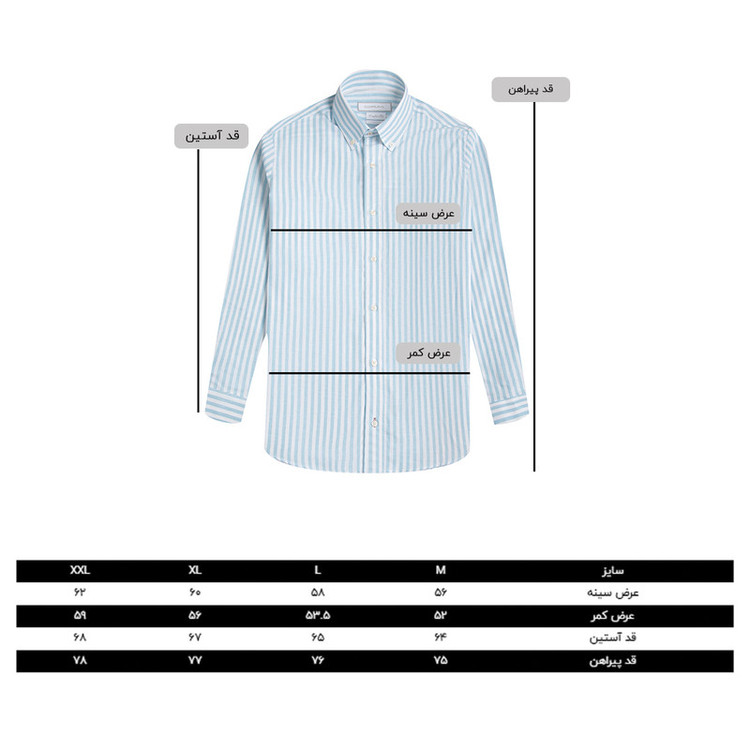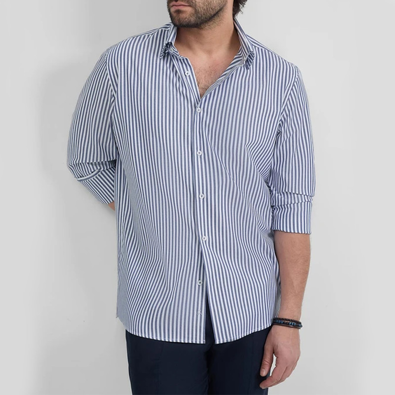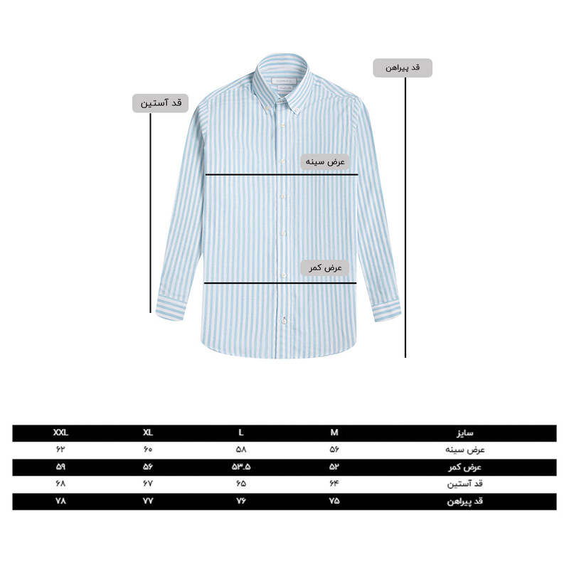 پیراهن آستین بلند راه راه، آستین دو دکمه، یقه دکمه دار، ثبات رنگ در شستشو،استایل: Comfort-Fit