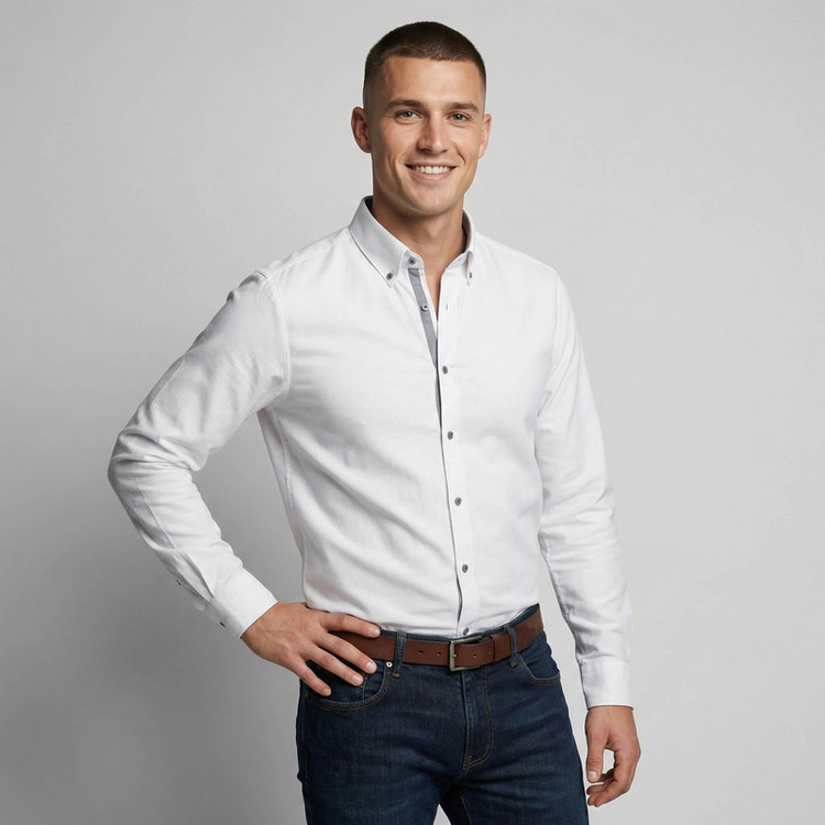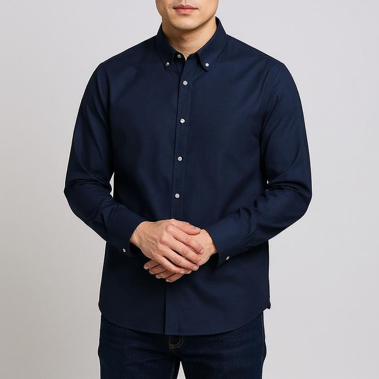 پیراهن مردانه آستین بلند پارچه تهیه شده از 100% الیاف پنبه استایل Comfort-Fit یقه دکمه دار آستین دو دکمه ثبات رنگ در شستشو