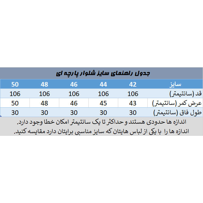 طرحطرحداراستایل لباسراستهنوع فاقمتوسطمورد استفادهروزمره , اداری و رسمیجزئیاترسمی و آزادجنسنخ , پلی استر