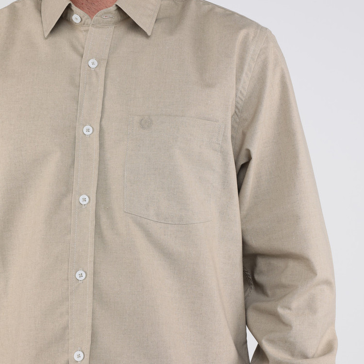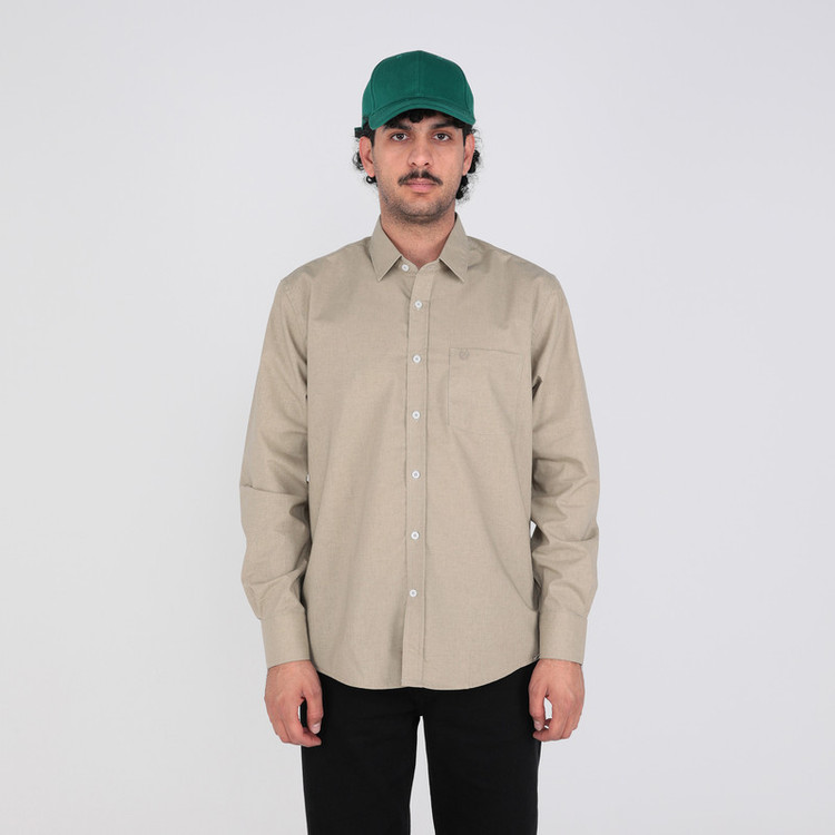 پیراهن مردانه / 35 درصد کتان 65 درصد پلی استر / زیر دست بسیار لطیف / یقه برگردان / دارای یک جیب / آستین بلند / رنگ های سرمه ای ، خاکی و سبز تیره .