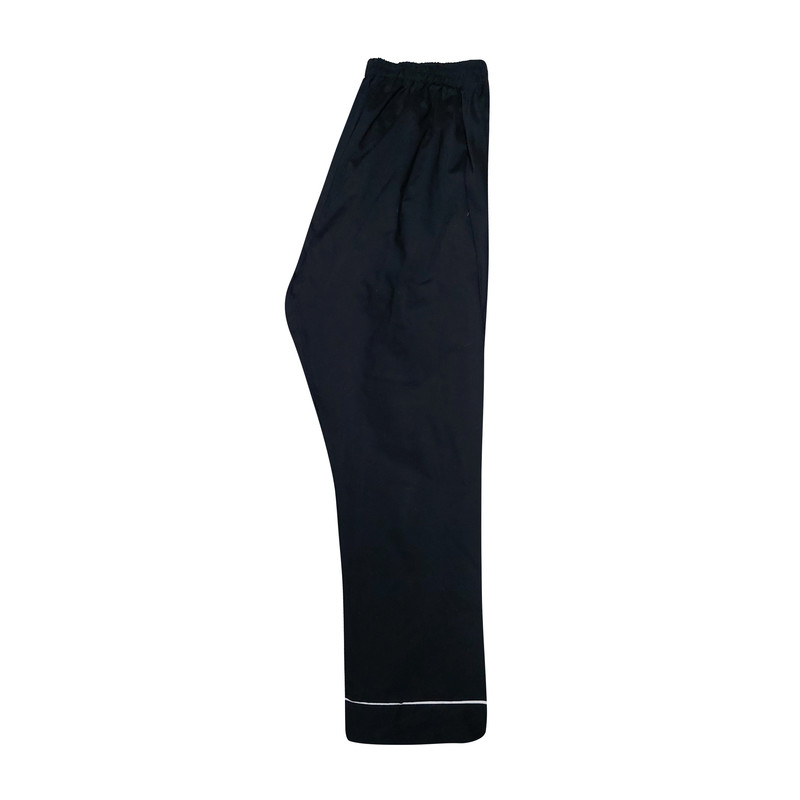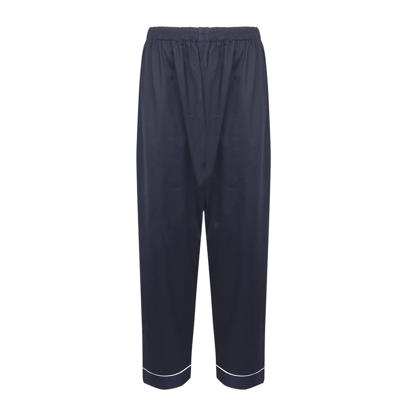 شلوار راحتی یا پیژامه مردانه از پارچه تترون و نخ درجه یک تولید شده است .رنگ پارچه سرمه ای می باشد ..جنس پارچه نرم و لطیف است . لوازم خانه گلبرگ این پیژامه زیبا را با دوختی بسیار تمیز آماده نموده است .برای فاق شلوار دو تکه اضافی خشتک دوخته شده است که از پاره شدن ان جلوگیری می کند . این شلوار گشاد و راحت است قد آن 100 و کمر تا120 می باشد .