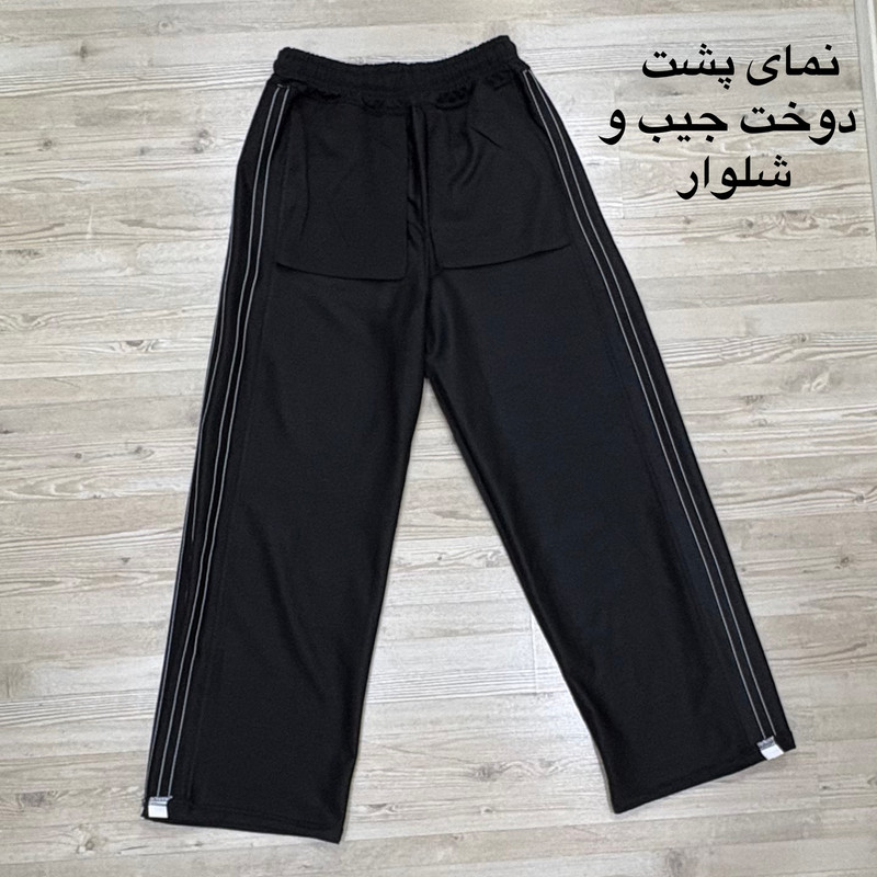 شلوار راحتی مدل بگ 3 جیب.2 جیب مورب در بغل شلوار و 1 جیب در پشت شلوار دارد.دو خط نواری سفید رنگ در بغل شلوار دوخته شده.کمر شلوار کشی با بند قابل تنظیم می باشد .تن خور و ظاهر زیبایی دارد و پارچه این مدل شلوار نرم و راحت است.