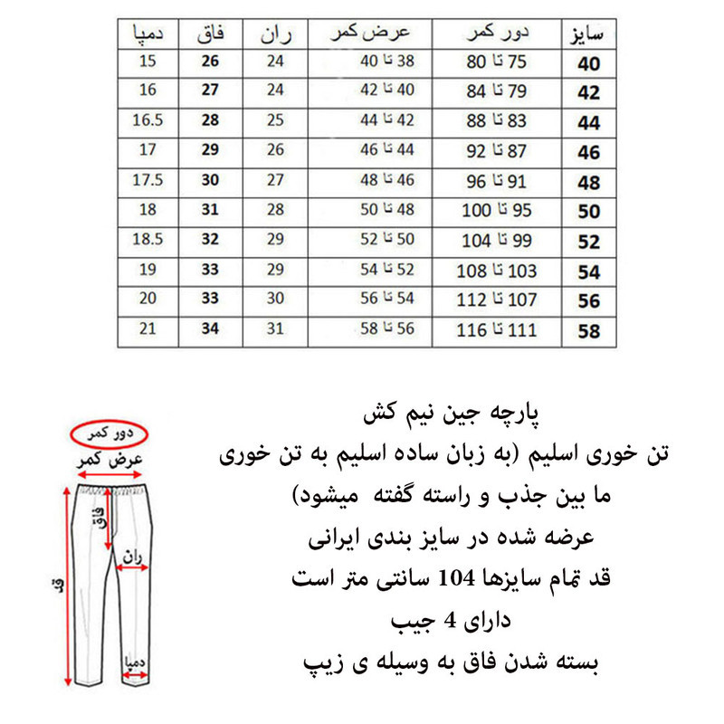 برای عمر بیشتر محصول در هنگام شست و شو ، شلوار را پشت و رو کنید و زیپ شلوار در حالت بسته و قفل قرار دهید.