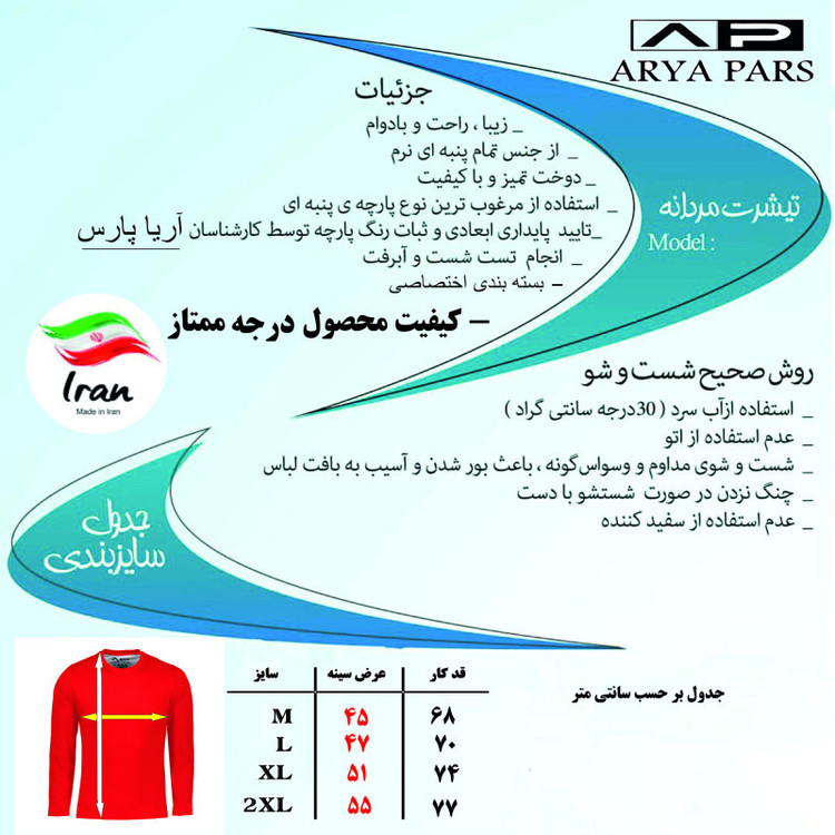 تی شرت آستین بلند مردانه آریا پارس مدل K