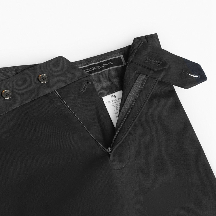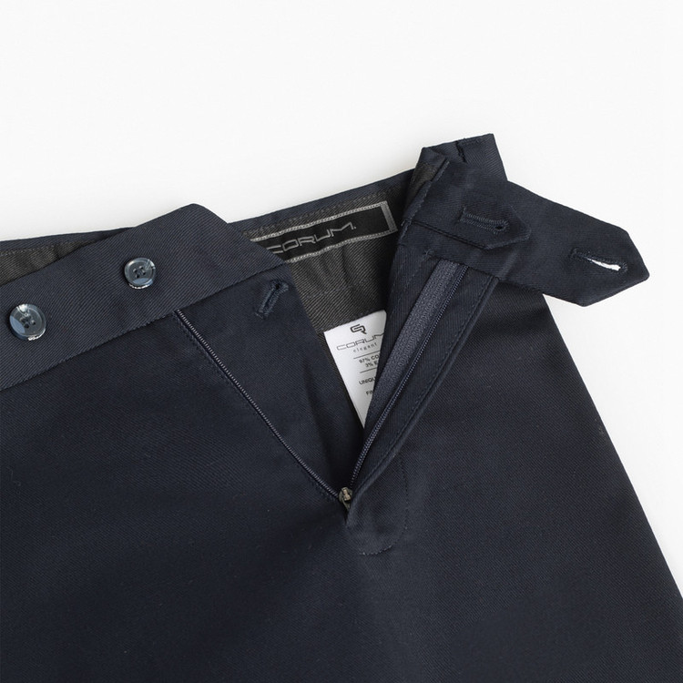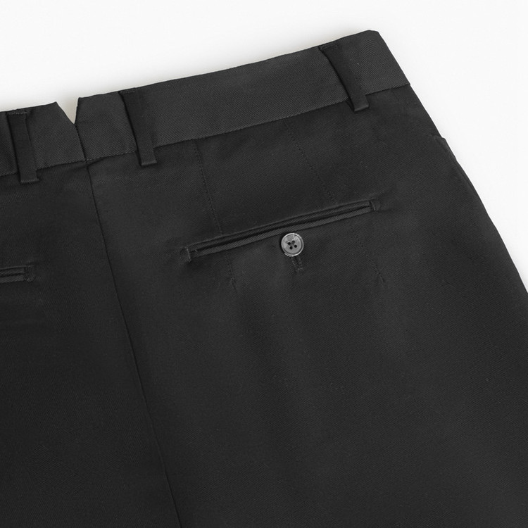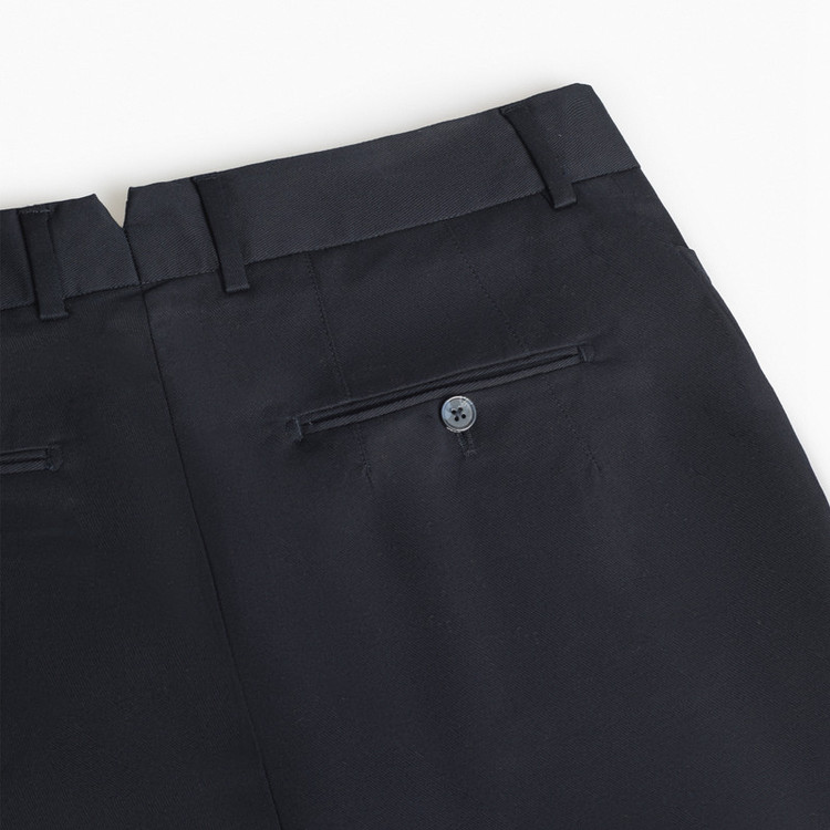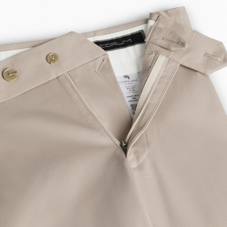 شلوار کتان، پیش کار تک دکمه، دارای بند کمر جهت استفاده از کمربند، دارای 3% الاستین جهت راحتی بیشتر