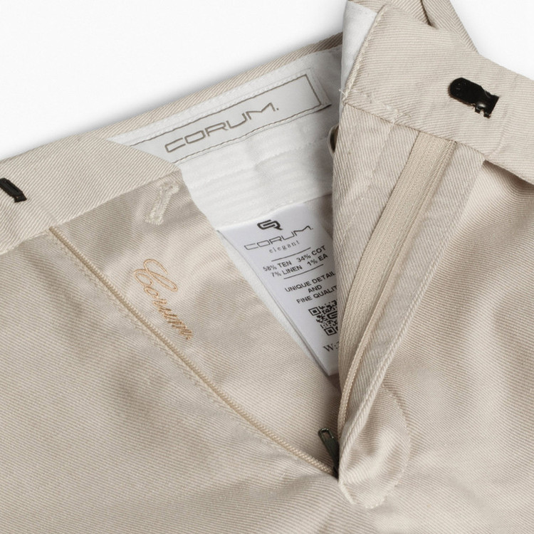 شلوار پارچه ای لینن، پیش کار دارای دکمه و قزن، الیاف خنک و سبک، دارای بند کمر جهت استفاده از کمربند