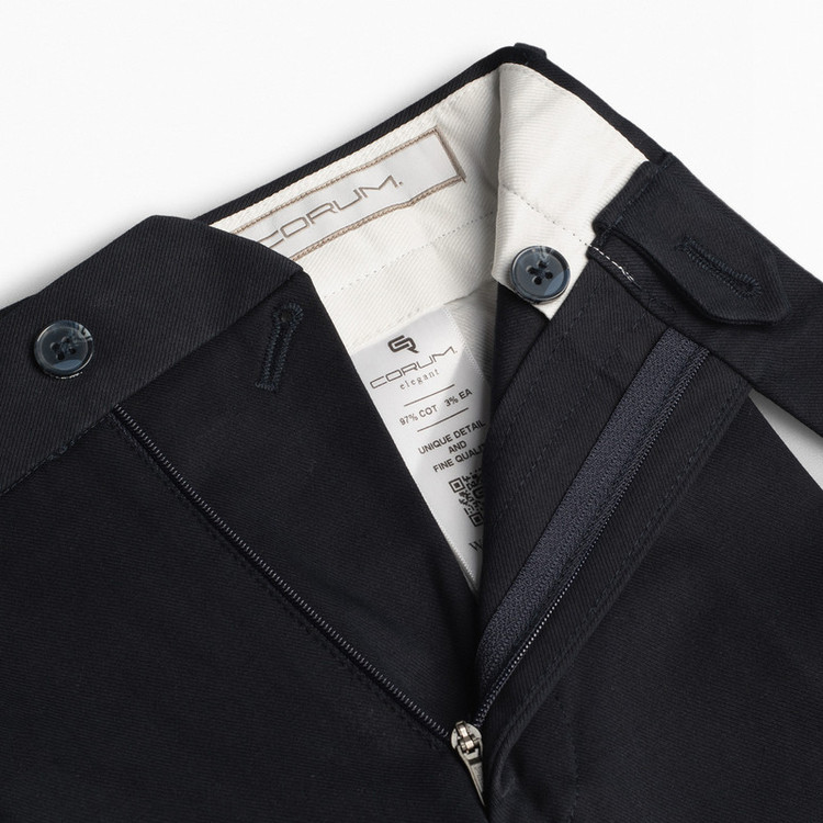 شلوار کتان، پیش کار تک دکمه، دارای جیب پاکتی، دارای بند کمر جهت استفاده از کمربند، دارای 3% الاستین جهت راحتی بیشتر