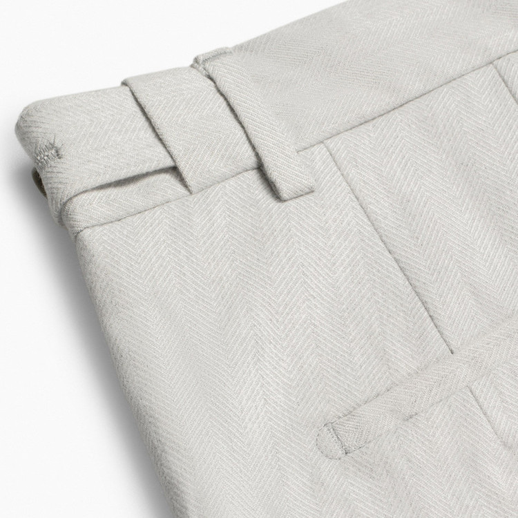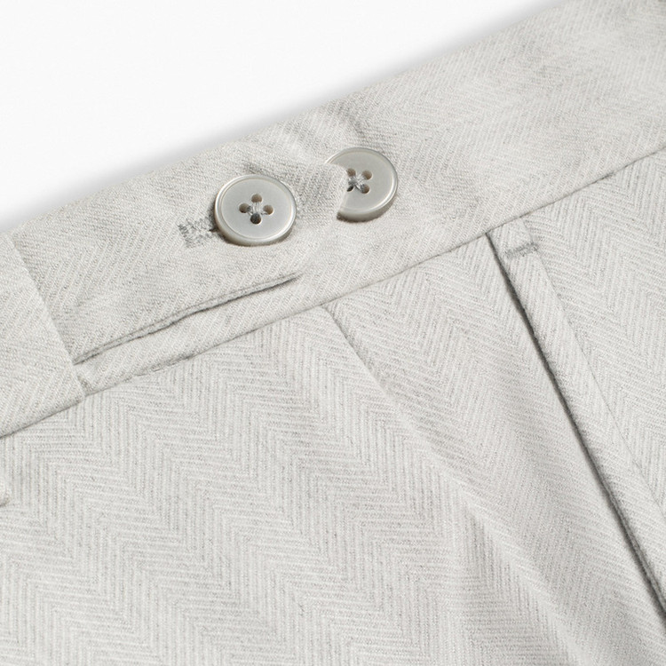 شلوار پارچه ای، پیش کار تک دکمه، دارای بند کمر جهت استفاده از کمربند، دارای 2% الاستین جهت راحتی بیشتر