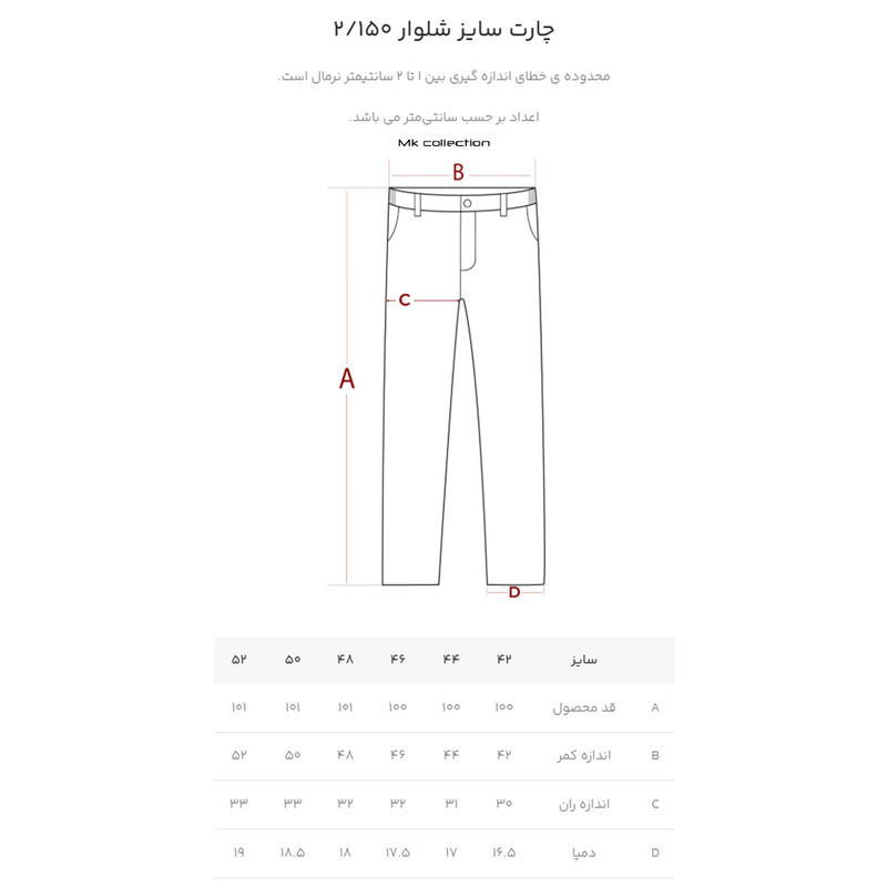 شلوار پارچه‌ای اسلیم فیت مردانه ام کی مدل 2150