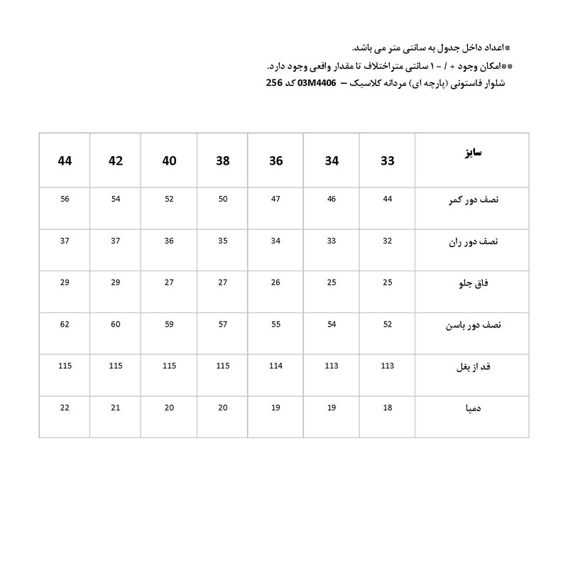 شلوار پارچه‌ای راسته مردانه پاتن جامه مدل فاستونی 03M4406