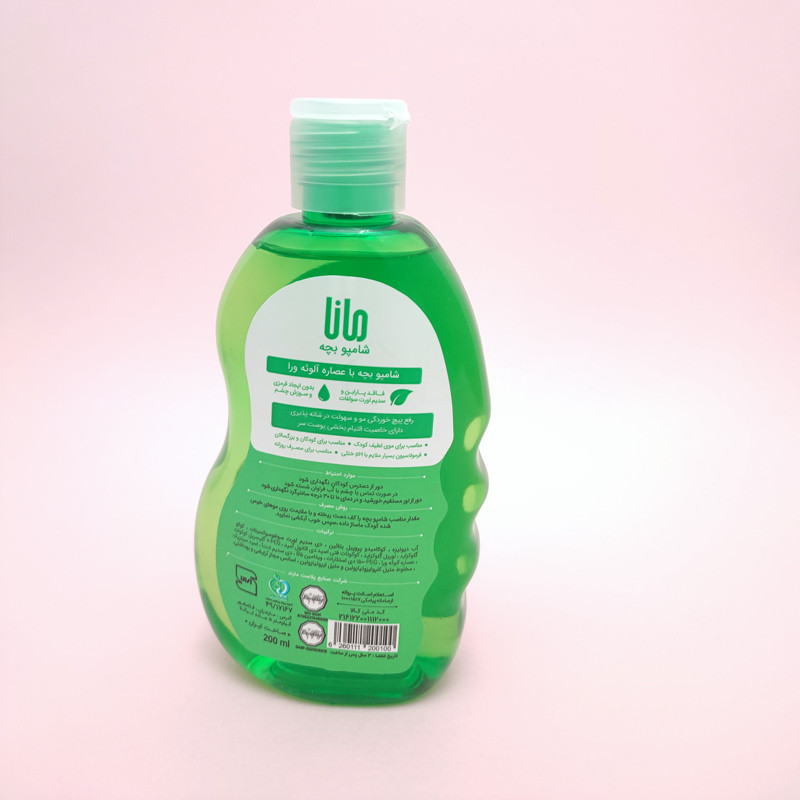 این بسته دو عددی شامپو بچه مانا شامل یک عدد شامپو کودک ویتامینه و یک عدد شامپو کودک مانا با عصاره آلوئه ورا هر یک با حجم 200 میلی لیتر (در مجموع 400 میلی لیتر) می باشد. میلیلیتر