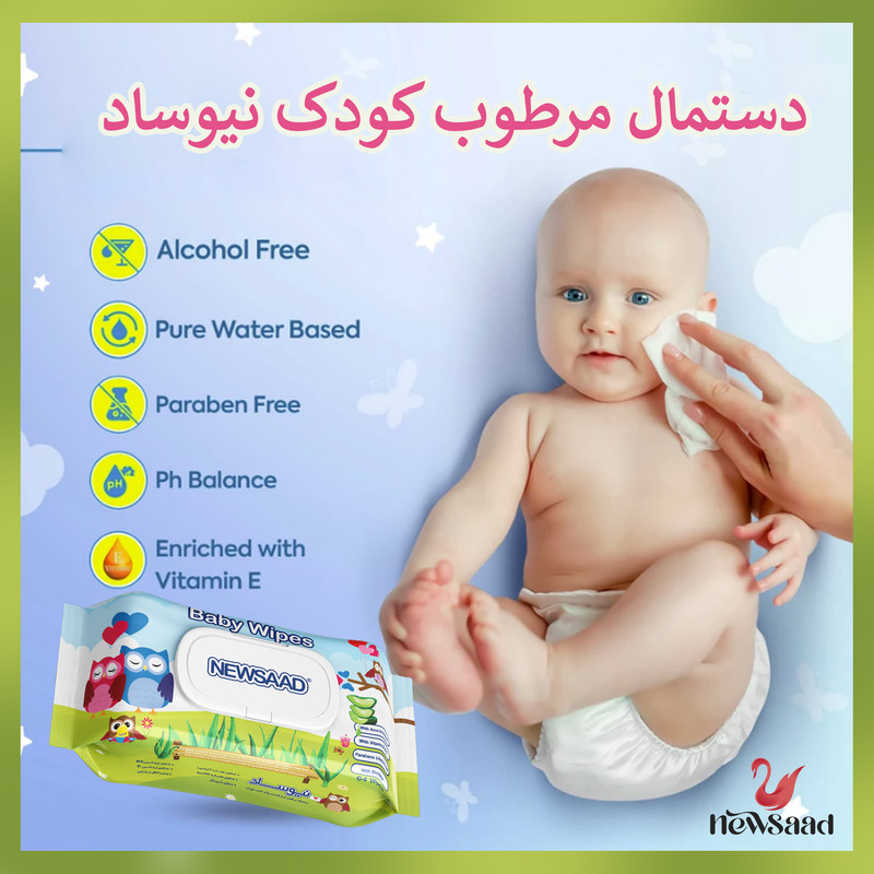 دستمال مرطوب کودک نیوساد مدل Happu Owl دو بسته 64 عددی