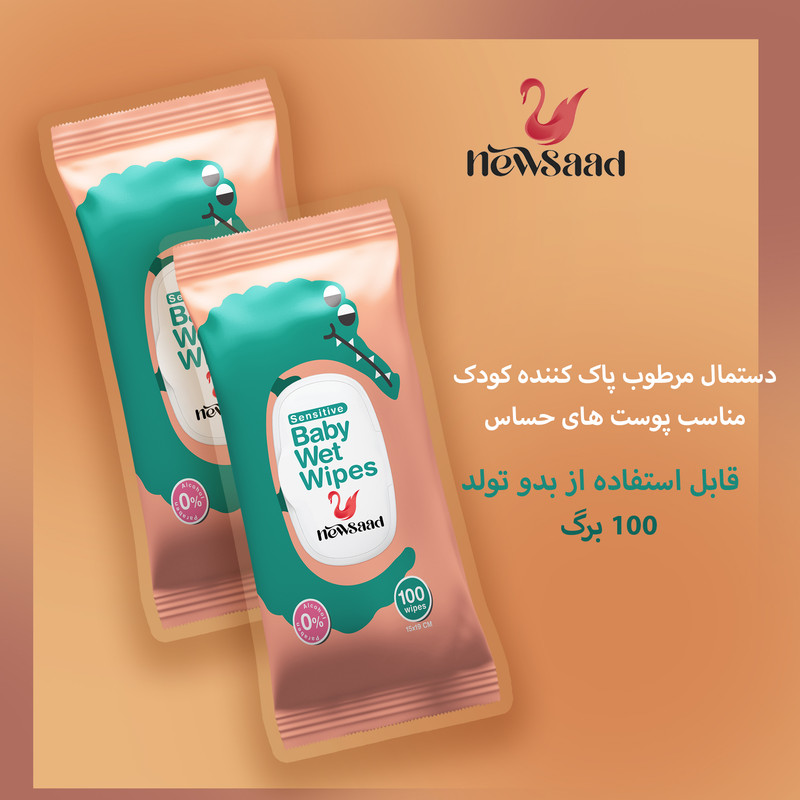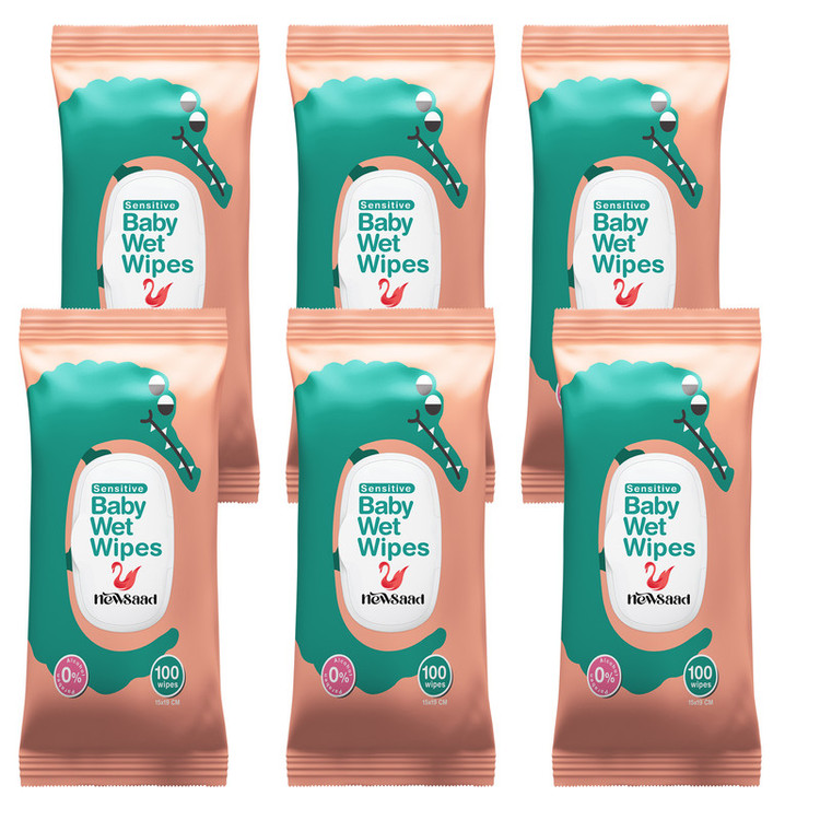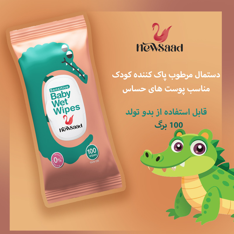 دستمال مرطوب کودک نیوساد مدل Crocodile شش بسته 100 عددی